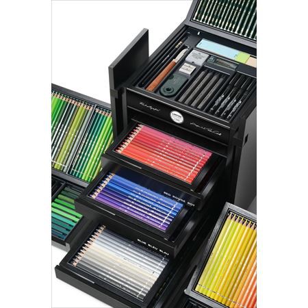 It is divided into several drawers which include the primary colours. When it comes to art supplies Karl Lagerfeld and Faber-Castells KARLBOX has got to up there on the wish list of many an illustrator or artist. The KARLBOX is a unique homage to Karl Lagerfeld and an expression of the symbiosis between an artist and its tools.
